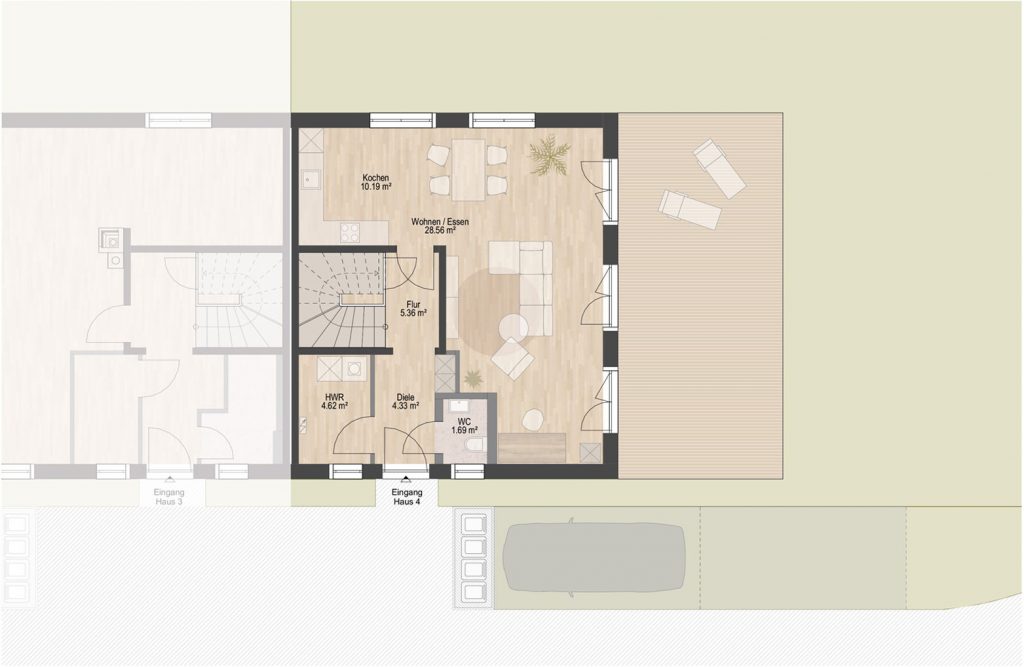 Haus 4 bietet Ihnen ein Zuhause mit Raum zum Leben. Mit einer Wohnfläche von ca. 132 m², einer großzügigen Terrasse und einem eigenen Grundstück von ca. 426 m² genießen Sie großzügiges Wohnen mit viel Platz für Familie, Alltag und persönliche Entfaltung.